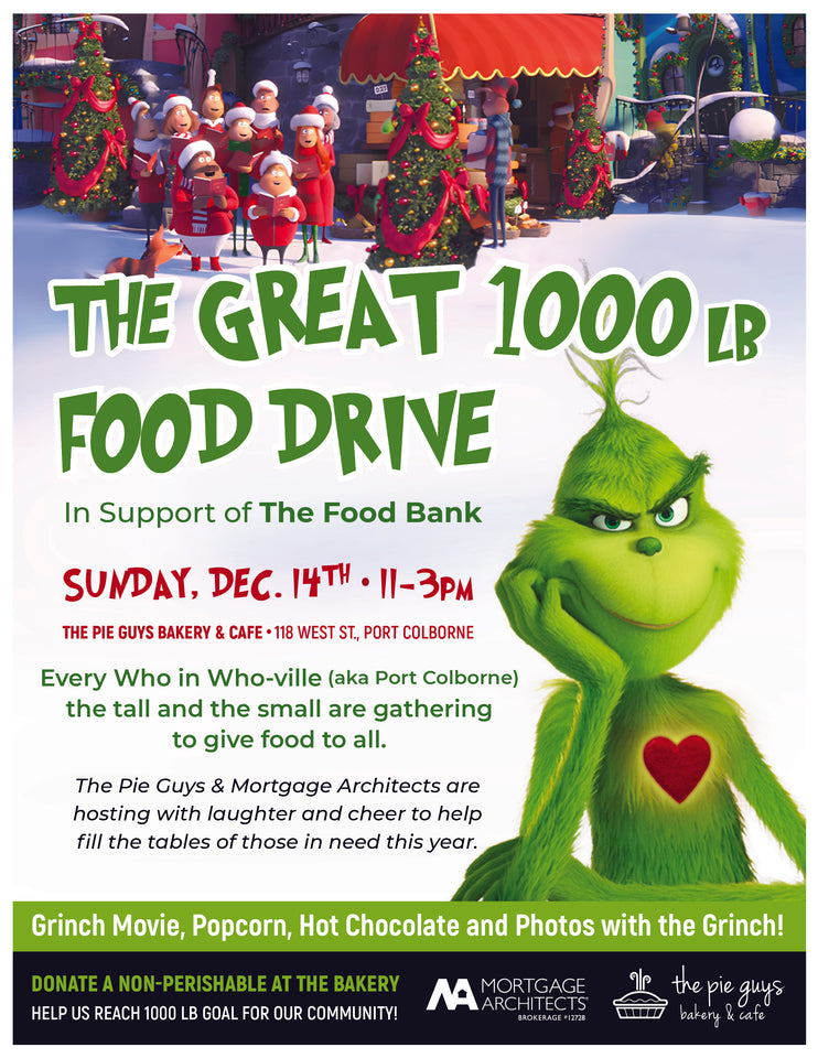 We need your help! Join us on Dec 14th as we try and raise 1000 pounds of food for our local food bank!